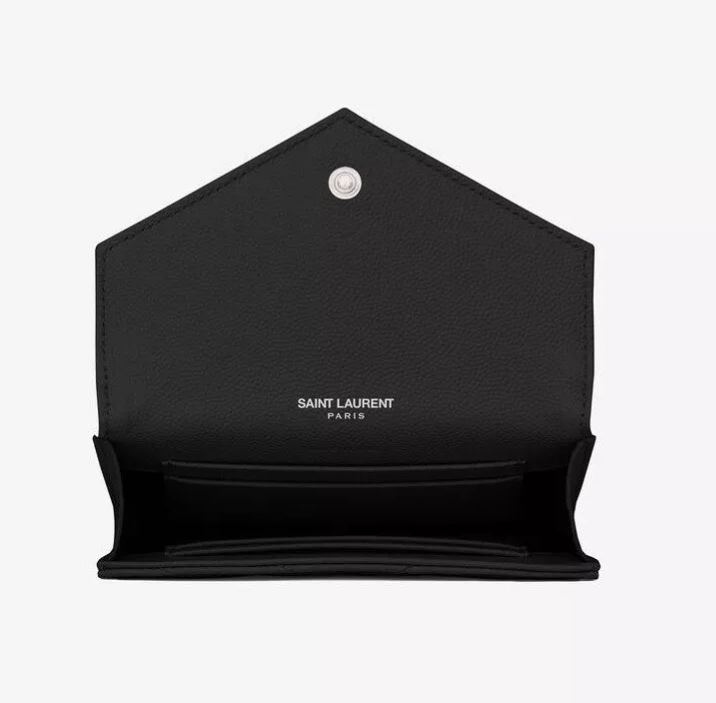 インターロッキングメタルYSLロゴとジャカードステッチのサンローランウォレット。