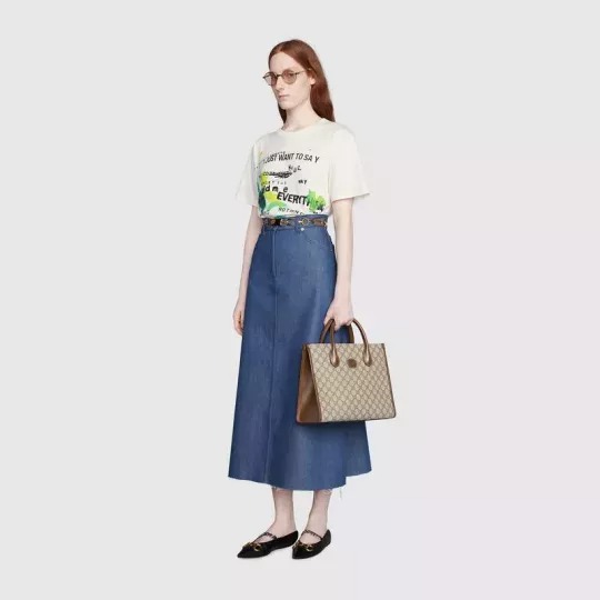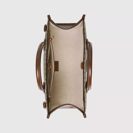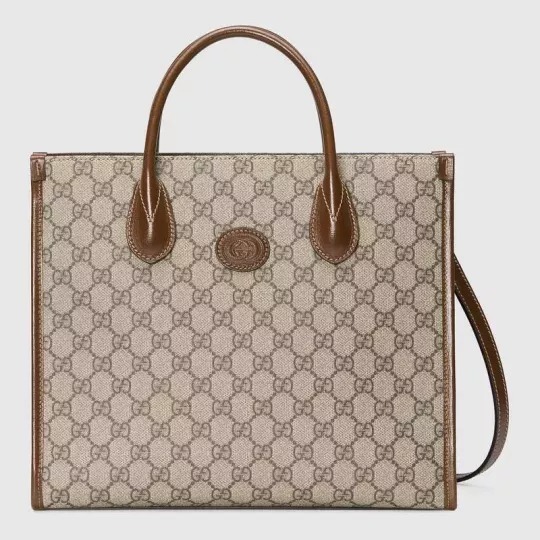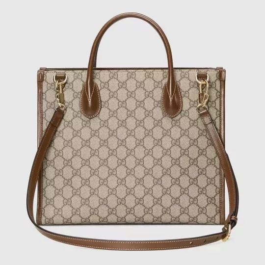 この構造化された小さなトートバッグは、茶色の革のトリムが付いたGG Supremeキャンバスでできており、トップハンドルとショルダーストラップを備えたデュアルキャリングオプションを提供します。
