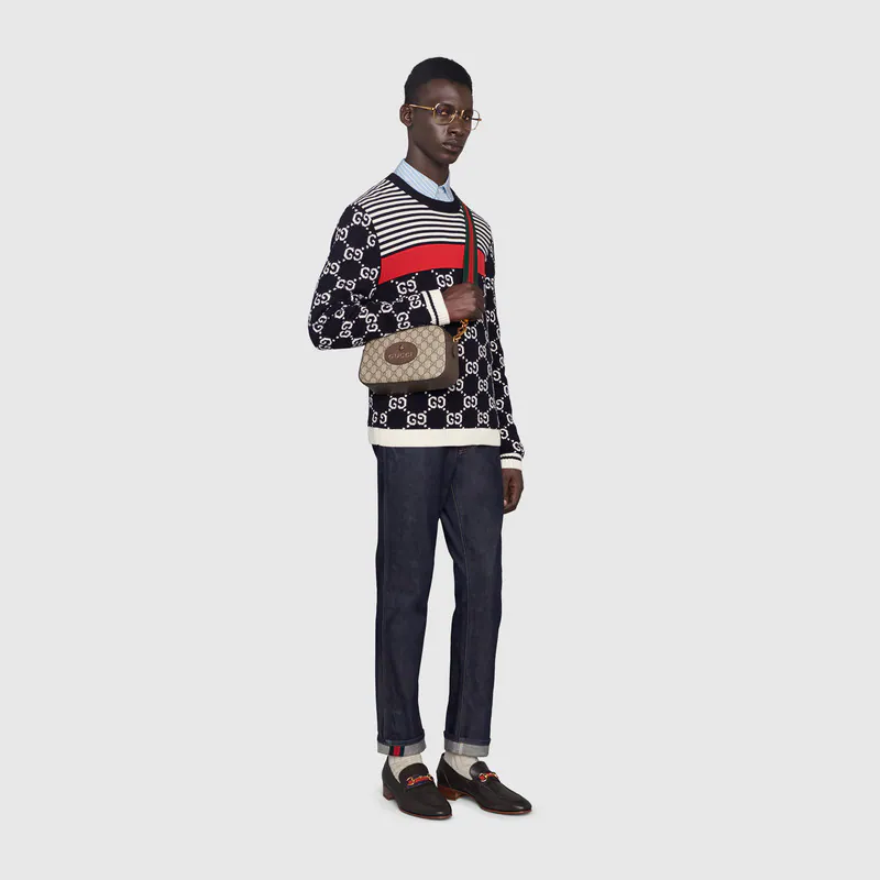 現代の航海者のためにデザインされた、ヴィンテージ風バッグのコレクション。GGスプリーム キャンバスにグッチを象徴するウェブ ストライプのトリムを施し、イエロー レザー ディテールをあしらいました。コントラストカラーのトリムは、かつてグッチの職人たちが使い古して擦り切れてしまったバッグのトリムを、新しい素材を用いて修理していたという、クラフツマンシップの歴史にオマージュを捧げています。