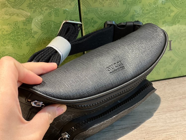 ブラック レザーのディテールとラバー ハードウェアで印象的に仕上げた、GGスプリーム キャンバスのベルトバッグ。