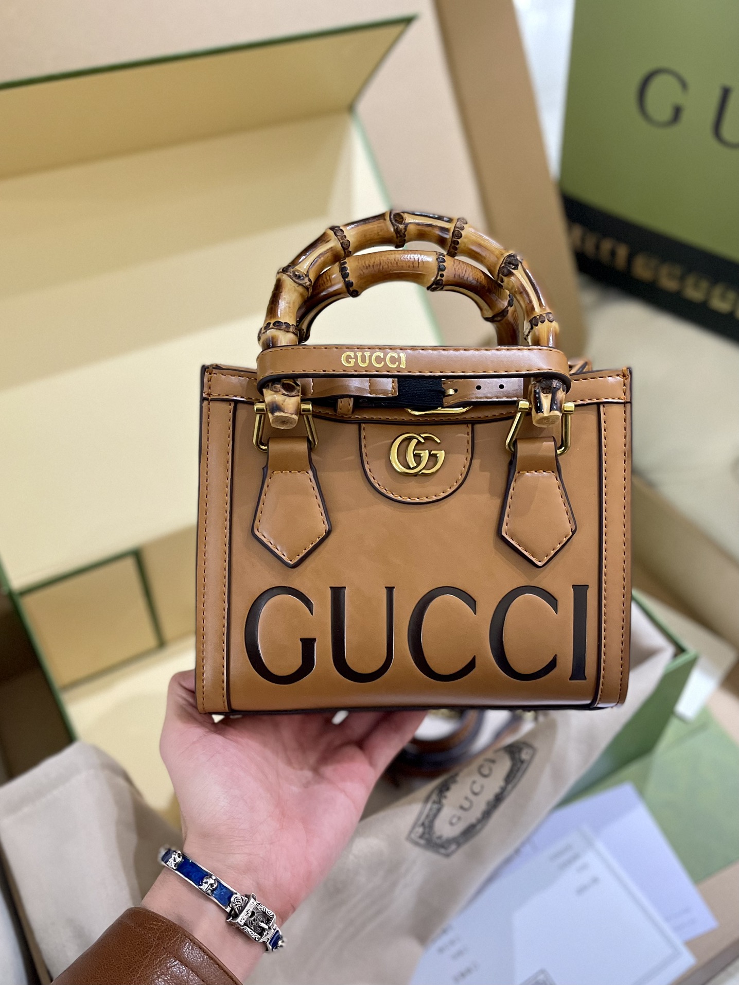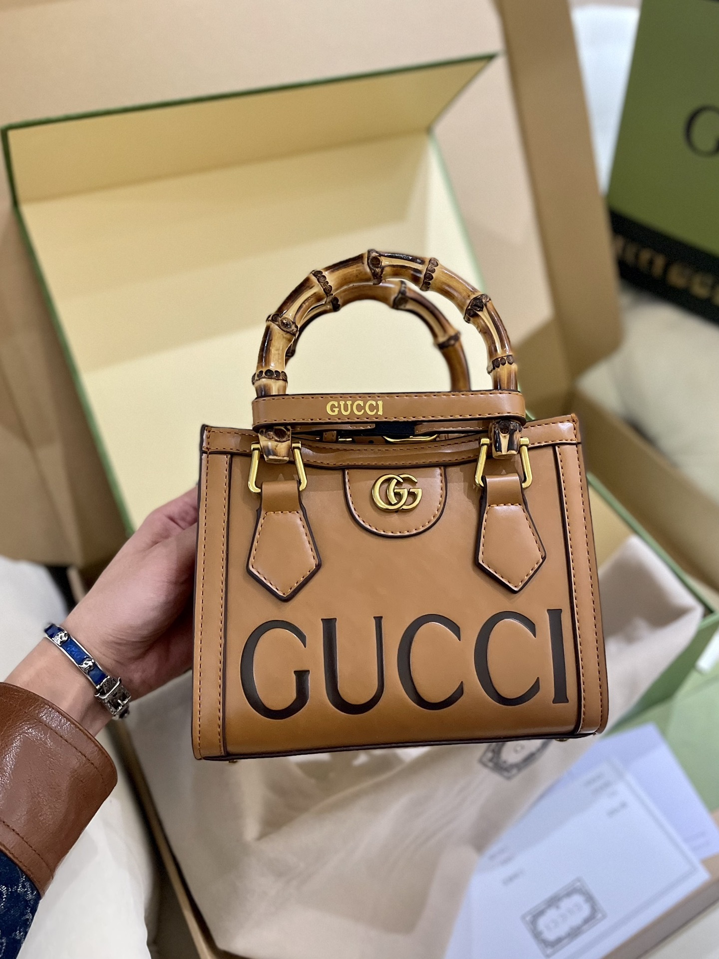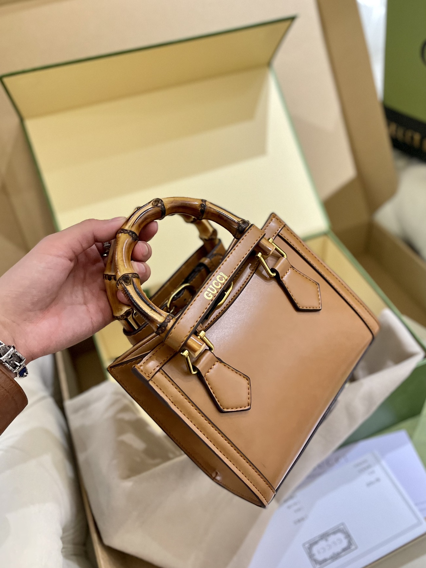 Gucciプレミアムエンボス竹節バッグGucciDianaショッピングバッグ