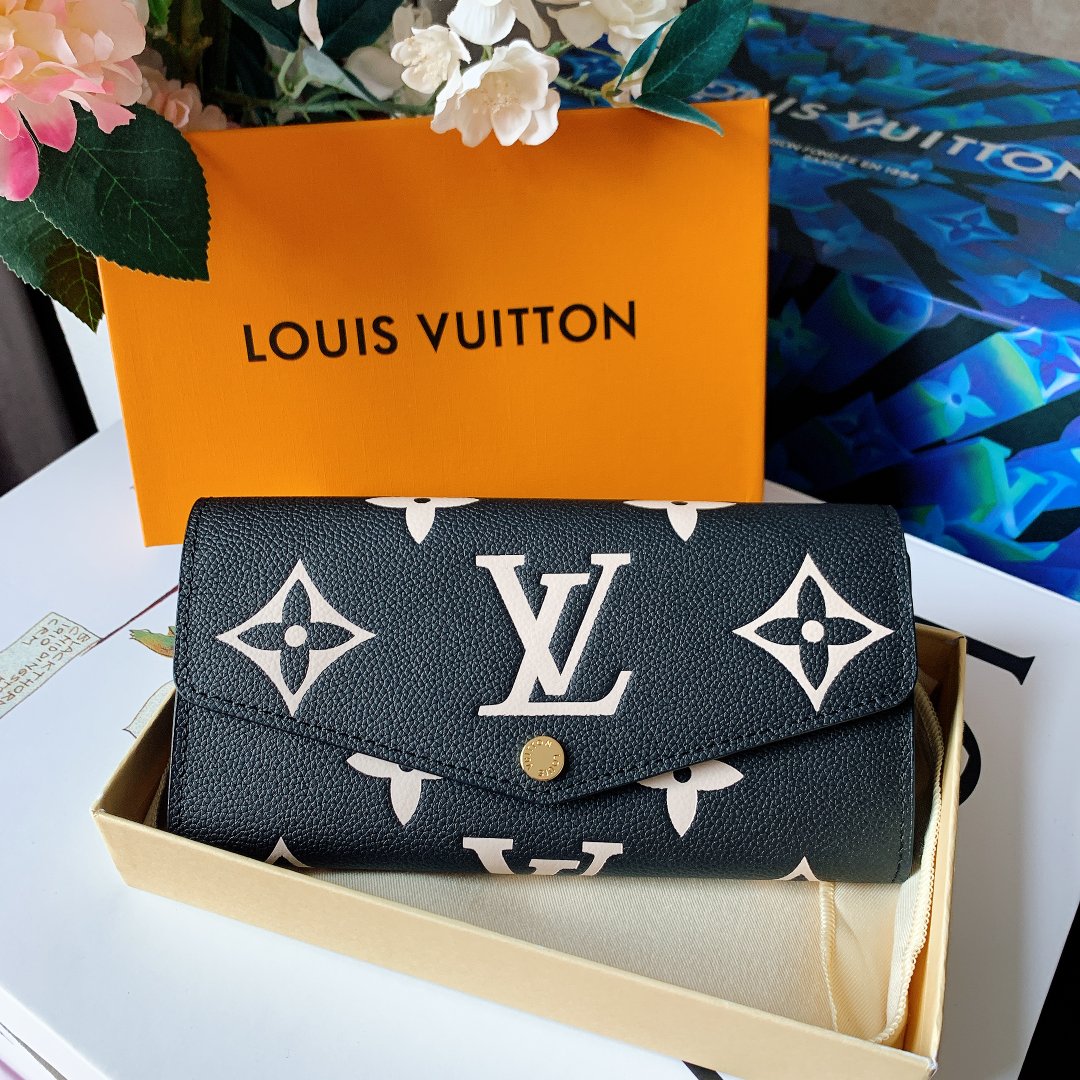 ルイ・ヴィトンの定番アイテムを、モノグラム・パターンのエンボス加工が美しいバイカラーのモノグラム・アンプラント レザーでエレガントに仕上げた「ポルトフォイユ・サラ」。ゴールドカラーのスナップボタンで開閉するエンヴェロップ型のフラップを開くと現れる、整理しやすい内装も魅力です。2つの大ぶりのコンパートメントに加え、16枚のカードを収納できるカードスロットや複数のポケットを備えています。