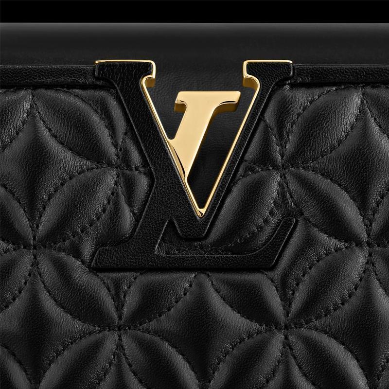 キルティングがエレガントな印象の「カプシーヌ MM」。モノグラム?フラワー モチーフを巧みに並べたキルティングのパターンは、同時にルイ?ヴィトン ストアを彩る装飾をも想わせます。ボディにもトリミングにも柔らかなラムレザーを使用し、洗練されたデザインに仕上げました。取外し可能な幅広のストラップで、ショルダーバッグとしても快適にお持ちいただけます。