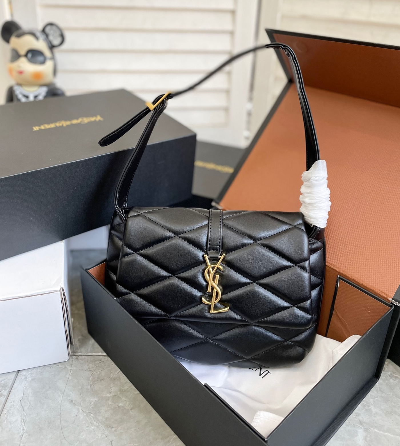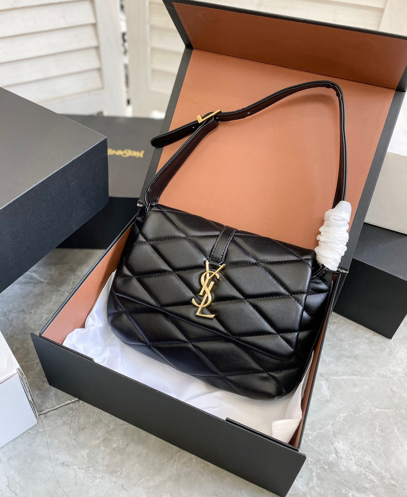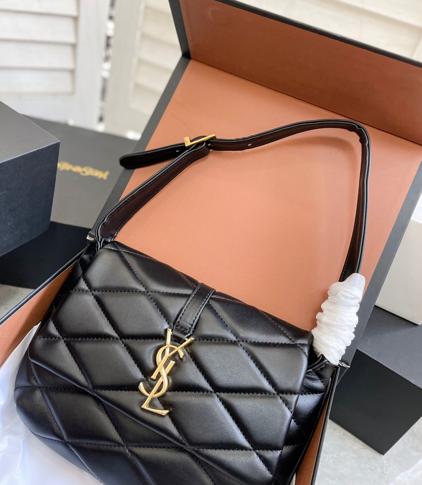 アイコニックなYSLシグネチャー ダイヤモンドキルティングのオーバーステッチが特徴です。